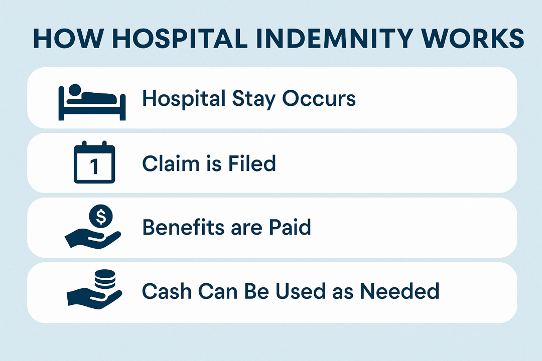 Hospital indemnity insurance is a supplemental plan that pays you a fixed cash benefit when you’re hospitalized for a covered stay—typically per day, per admission, or per service (e.g., ICU, ambulance, surgical). The money goes directly to you, not the hospital, and can be used for deductibles, copays, travel, childcare, or lost income. Policies often include optional riders (ER, observation, rehab, cancer) and may have waiting periods or preexisting condition limits. It doesn’t replace health insurance and won’t cover non-covered events; benefits vary by carrier, so check definitions (inpatient vs. observation), caps, and exclusions. It’s especially helpful for people with high out-of-pocket exposure on Medicare Advantage or ACA plans.