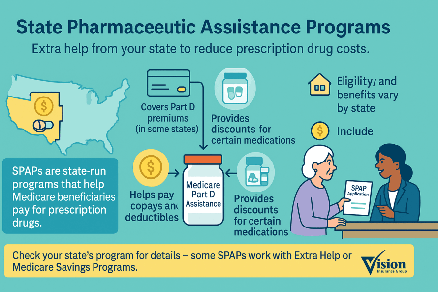 | State Pharmaceutical Assistance Programs (SPAPs) | Drug copays or discounts | Varies by state | State program office |