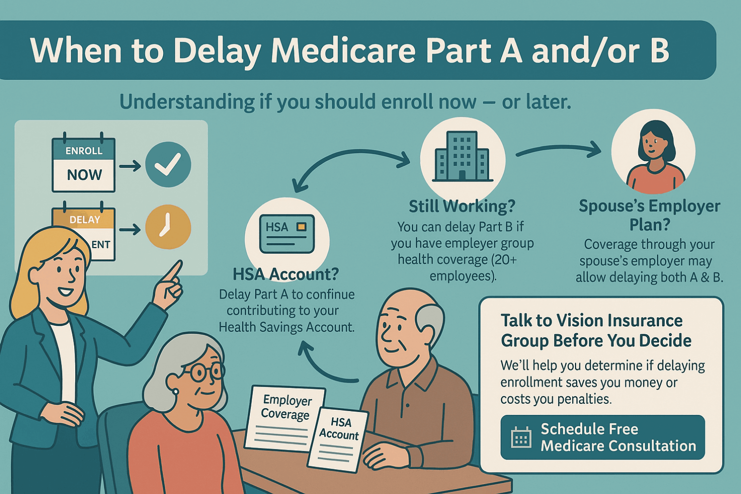 If you’re still covered by active employer/union group health insurance (yours or your spouse’s), you may delay and later use a Special Enrollment Period (SEP)—an 8-month window that begins the month after employment or that coverage ends—to sign up without a late penalty.