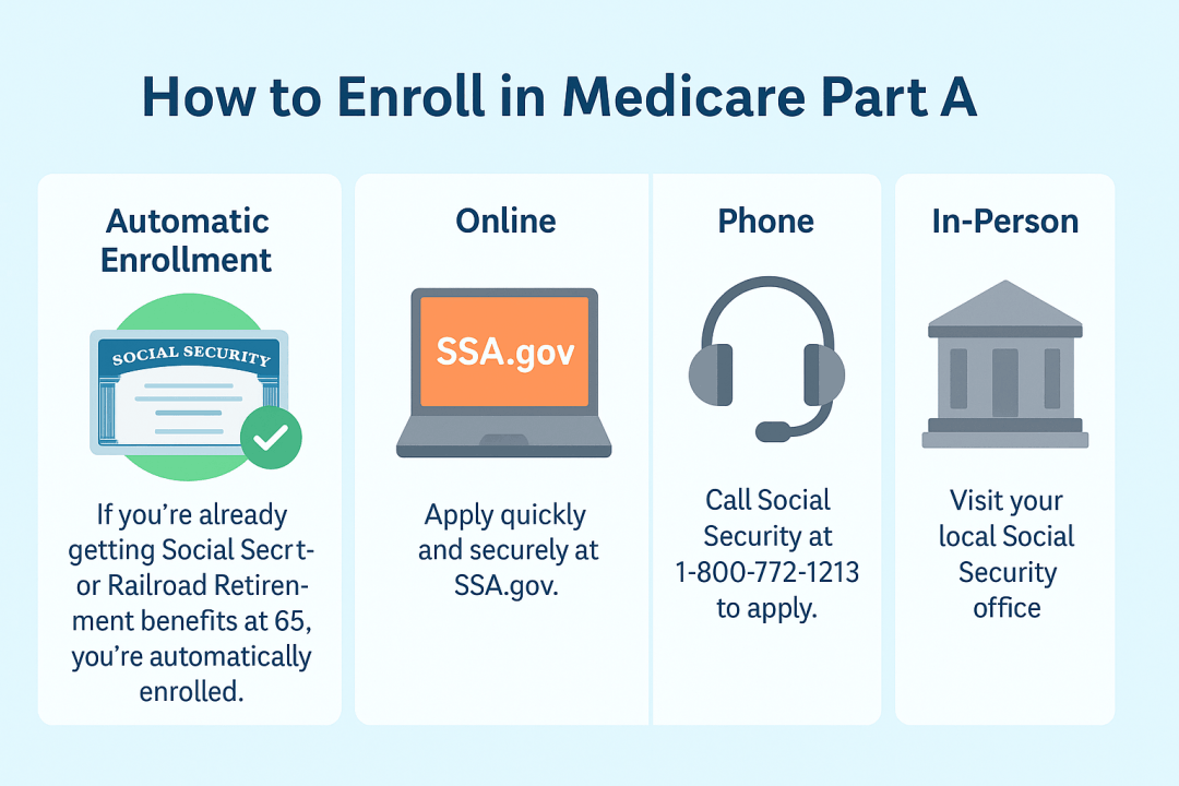 You generally enroll in Medicare Part A and/or Part B during your Initial Enrollment Period (IEP) — a 7-month window spanning the 3 months before your 65th-birthday month, your birthday month, and 3 months after. If you enroll before your birthday month, coverage starts the first day of your birthday month (the month before if your birthday is on the 1st); if you enroll during or after, coverage starts the first day of the month after you enroll.