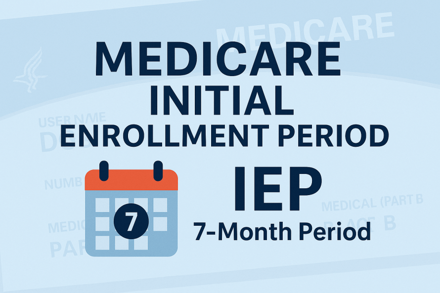 Your Initial Enrollment Period (IEP) is your first chance to sign up for Medicare when you become eligible — usually when you turn 65 (or after 24 months of disability benefits).